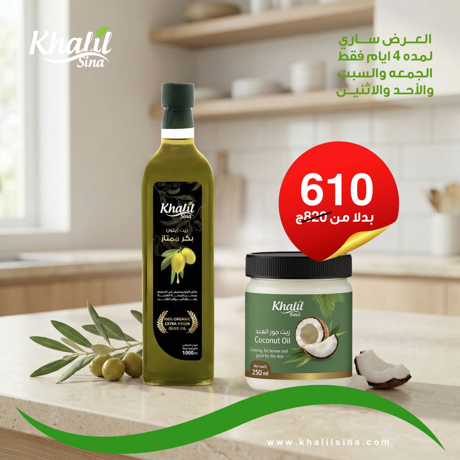 1 لتر زيت زيتون +زيت جوز الهند خام برطمان 250 جرام